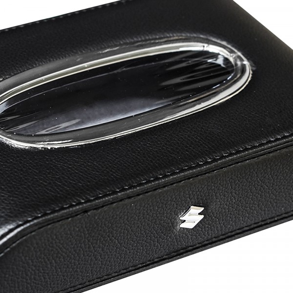 Box tissue berbahan dasar synthetic leather, tersedia dalam beberapa pilihan warna (hitam, coklat, merah, atau kombinasi coklat hitam, tergantung persediaan) yang dilengkapi dengan logo mobil yang sesuai anda inginkan.