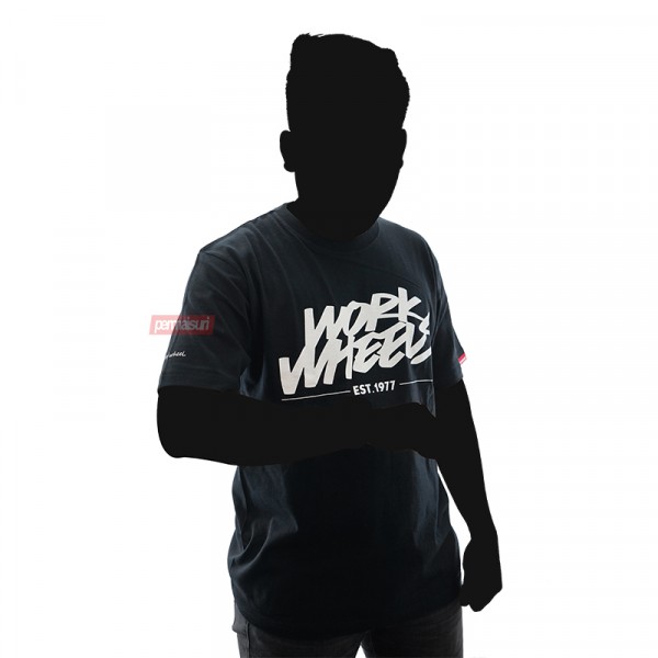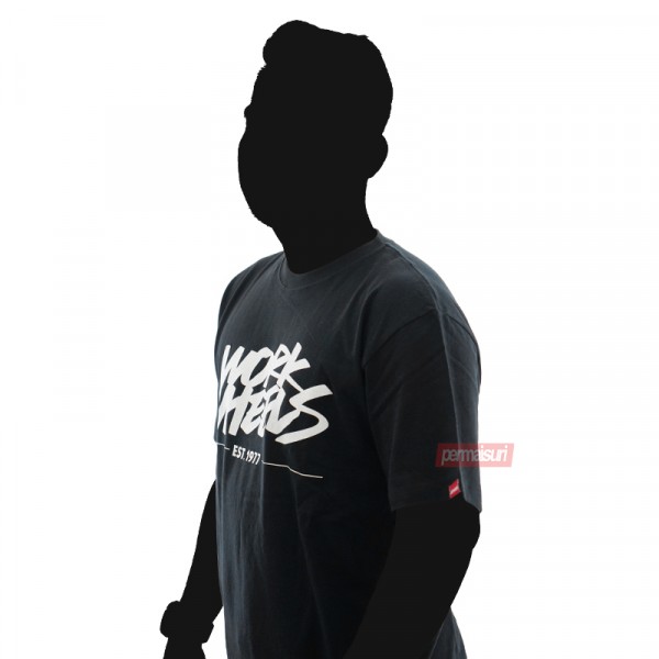 Tshirt dari koleksi Merchandise Original Work Wheels ini berbahan dasar 100% Cotton, berwarna Black dengan size L & XL dan dibuat di Tiongkok. Di bagian depan nya tertulis Work Wheels Est. 1977