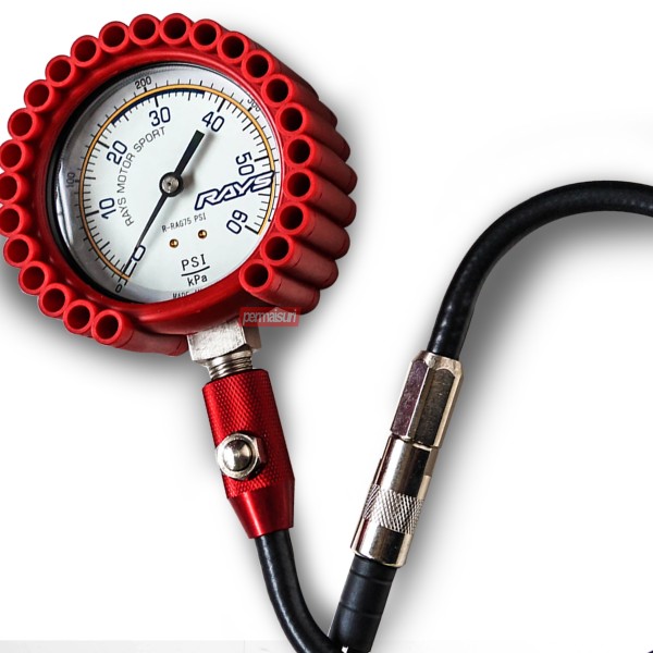 Alat pengukur tekanan angin dengan satuan psi, sesuai untuk dipakai di Indonesia, keluaran dari pabrikan Jepang RAYS..