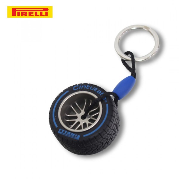 Merchandise Key chain Original dari Pirelli untuk para penggemar Formula 1. Di buat dengan skala 1:20 dari ukuran ban asli F1 18inch. Memiliki design velg yang keren dan berbahan asli metal, untuk di bagian bannya menggunakan material karet dengan logo khas Pirelli yang berwarna biru, yang artinya ban ini di Formula 1 merupakan ban yang digunakan ketika jalanan basah (wet trye).