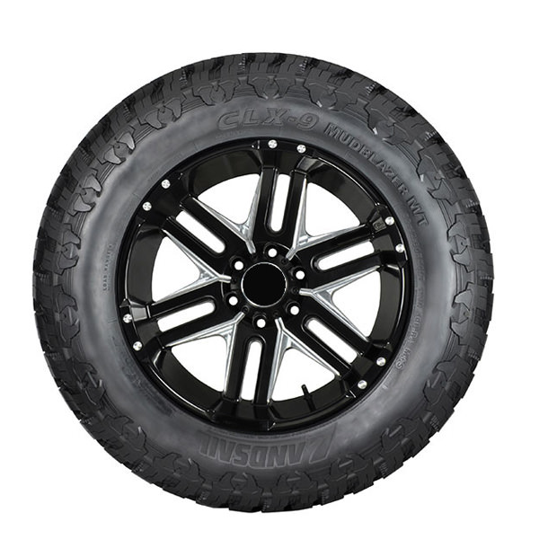 The CLX9 Mud Terrain tire's optimized tread is designed with a high void ratio and deep tread that clears out mud/dirt.
